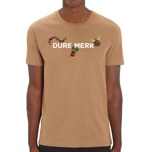 DURE MERK 2014" T-SHIRT IN OFF-WHITE WITH BROWN PRINT